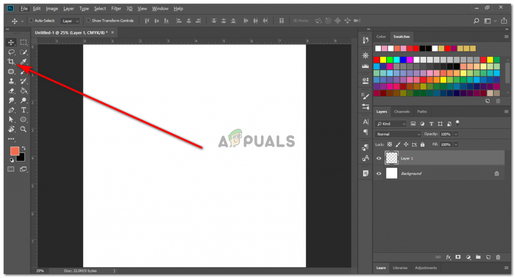 Шаг 2: Выберите инструмент кадрирования на палитре инструментов.