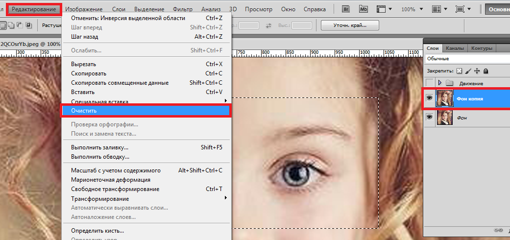 Находясь на копии фонового слоя, зажимаем CTRL и кликаем по слою с лицом, тем самым выделяя и его.