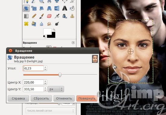 угол картинки. Если вы наведете курсор за углы картинки, то появятся поворотные переключатели, которые позволяют