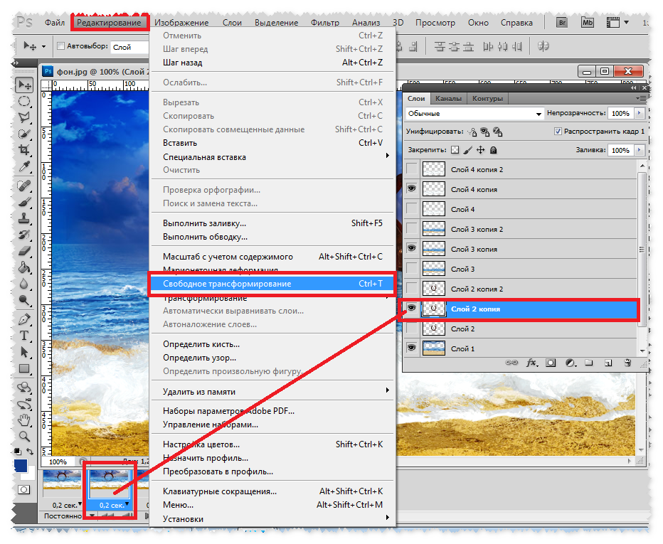 При помощи рамки «Свободного трансформирования» можно вращать и масштабировать вырезанное лицо. Для сохранения пропорций нужно зажать SHIFT.