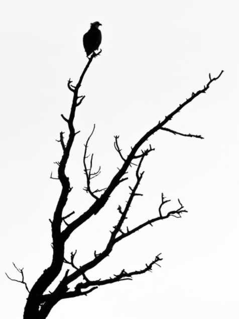 Когда я рассматриваю этот снимок, мой взгляд сначала идет по стволу дерева, затем поднимается по ветке, к взгромоздившейся на нее, птице; птица смотрит вправо и это перемещает взгляд к вершине второй ветки справа, откуда он перемещается по этой ветке вниз к основанию, туда, откуда я начинала смотреть и начинается новый круг. Это занимает мгновение, но заставляет зрителя остановиться и посмотреть. Составление «карт движения глаз» — это отличный способ узнать о композиции — посмотрите на Ваши любимые черно-белые снимки и как Вы на них смотрите — на хорошей фотографии Ваш взгляд будет все время перемещаться.
