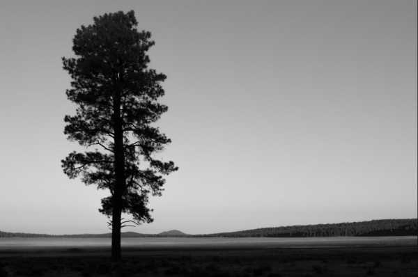 А на этой фотографии все довольно минималистично. Не так много мест где «разгуляться» взгляду. Вверх, вниз по дереву, затем вправо и влево по горизонту. Одна основная форма — одинокая сосна. Огромное пустое небо справа от сосны уравновешивает «вес» дерева с точки зрения композиции. В этом случае, отсутствие других деревьев подразумевает чувство независимости. Или это может показаться одинокой фигурой.
