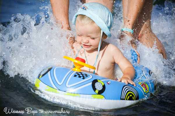 Модель можно по разному располагать относительно света. Контровой свет (то есть свет, направленный в камеру) придаст снимку объема, добавит бликов для настроения. Главное не допускать контрастных теней на лице модели. Если граница между светом и тенью попадает на лицо, то немного сдвинуть модель в тень. Тень гарантирует более ровное освещение, подходящее для портретной съемки, в то время как яркий свет гораздо лучше подчеркнет яркие краски окружающих декораций. Весной и летом здорово получаются динамичные кадры, потому что света хватает на самые короткие выдержки, динамики снимку добавят брызги воды, об остальном пусть позаботится ваш непоседа. ###ЛЕТО