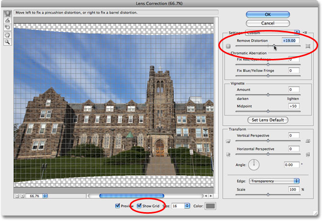 Ползунок удаления искаженийЭтот инструмент поможет вам исправить бочкообразную и подушкообразную дисторсию за один шаг.