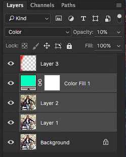 ΠΠ·ΠΌΠ΅Π½ΠΈΡΠ΅ ΡΠ΅ΠΆΠΈΠΌ Π½Π°Π»ΠΎΠΆΠ΅Π½ΠΈΡ Π½Π° Π¦Π²Π΅Ρ (Color) ΠΈ ΡΠΎΠΊΡΠ°ΡΠΈΡΠ΅ Π½Π΅ΠΏΡΠΎΠ·ΡΠ°ΡΠ½ΠΎΡΡΡ (Opacity). Π― ΠΈΡΠΏΠΎΠ»ΡΠ·ΠΎΠ²Π°Π» 10%.