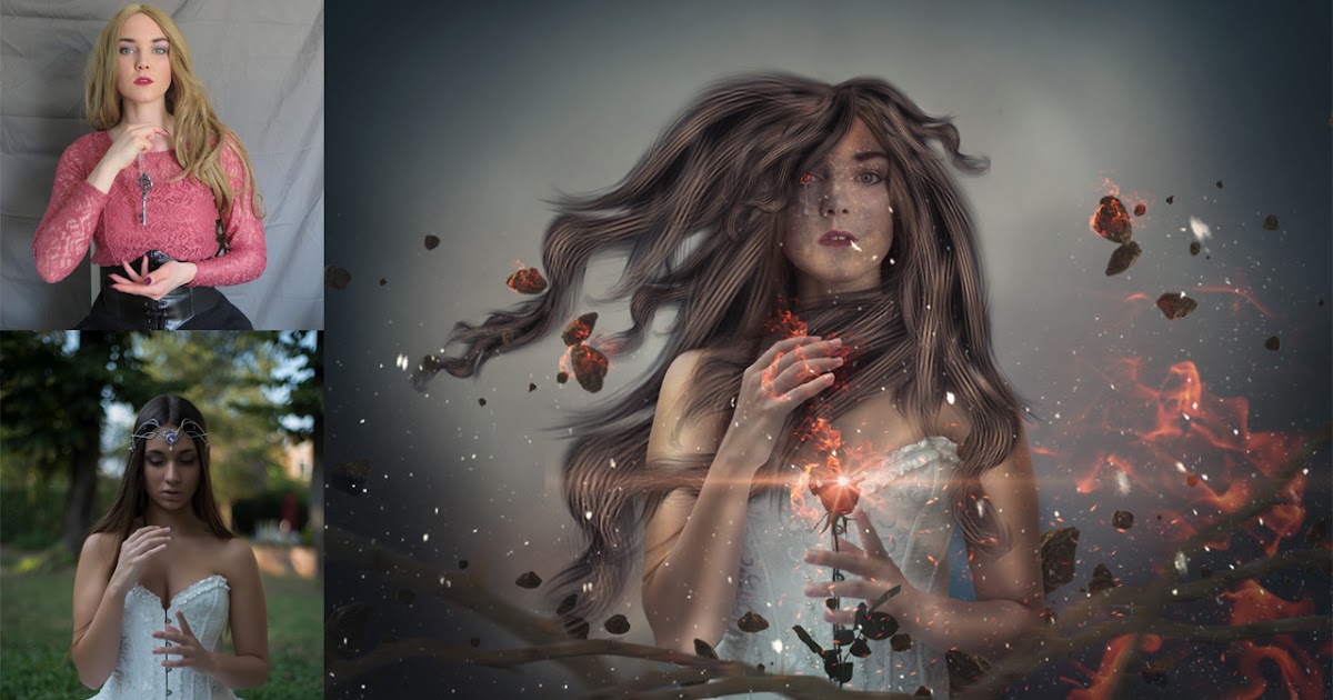 Удалите также крошечные искры, исходящие от огня, чтобы они не мешали лицу девушки.