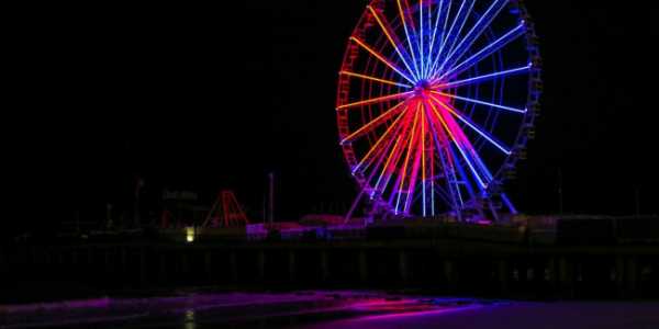 Цветной аттракцион ночью.