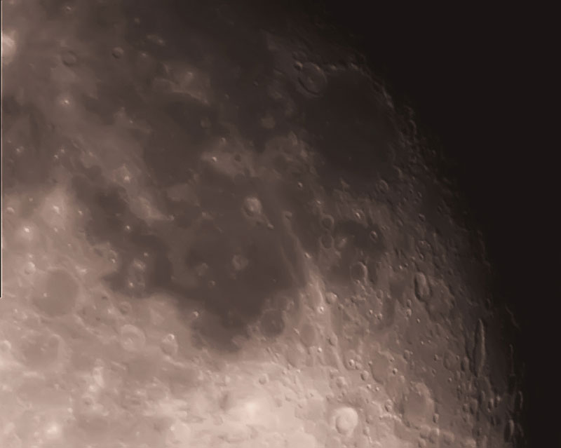 Вернитесь к одному концу тени и запишите первый AVI. Загрузите файл в программу ручной сборки, например iMerge, и переместите телескоп к следующему небольшому участку Луны, чтобы создать грубую мозаику.