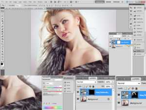 Например, нужно в Photoshop понизить цветовую насыщенность только на волосах модели (чтобы убрать неприятную желтизну со светлых волос). Для этого создаем корректирующий слой «Hue/Saturation» или «Цветовой тон/Цветовая насыщенность», в настройках которого и снижаем цветовую насыщенность (Saturation) примерно на –30. Но при этом цветовая насыщенность снижается по всему слою, а нам нужно применить эти настройки только к участку с волосами.