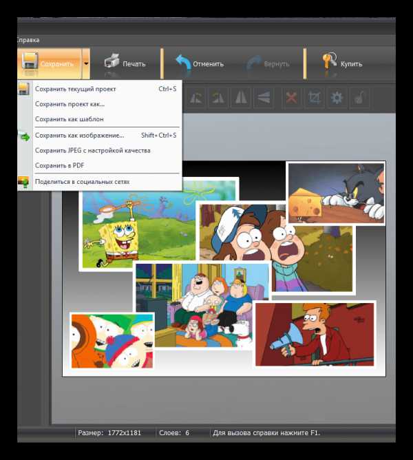 Главное отличие CollageIt от Мастер Коллажей и ФотоКОЛЛАЖ заключается в расширенных возможностях экспорта. Помимо обычного сохранения коллажа графическим файлом в одном из популярных форматов, непосредственно из окна программы пользователь может поделиться своим скромным шедевром с друзьями в социальных сетях Flickr и Facebook, а также установить коллаж в качестве обоев на рабочий стол. Скачать CollageIt Picture Collage Maker Pro