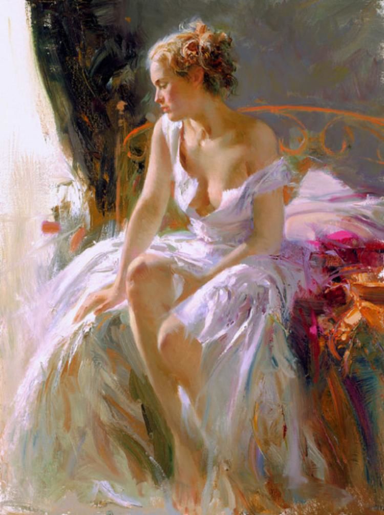 Софи Плоэг, Шаль (фрагмент), холст, масло, 122×61см. Для этой картины я расположил свою модель спиной к окну.Великолепное фото, наверное, лучше оставить отличным фото