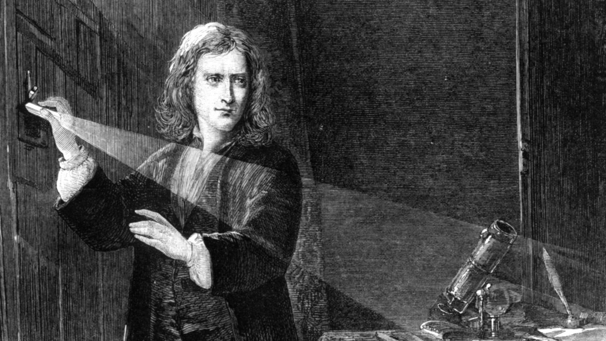 История науки, концепция. Исаак Ньютон и физика. наука о свете, оптика. преломление света и научные исследования в области физики.ПРЕМИУМ