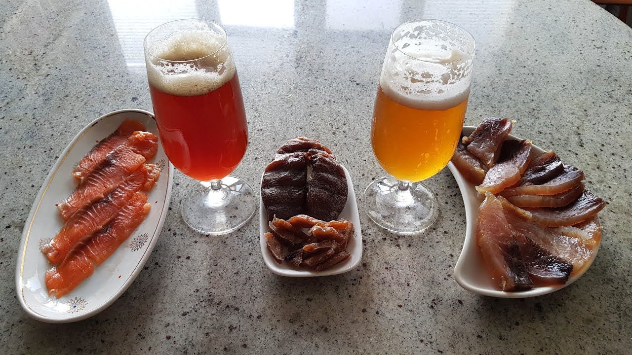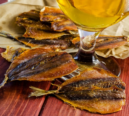 Традиционно считается, что вяленая рыбка хорошо подходит светлым лагерам и нефильтрованному пенному напитку, а с темными сортами лучше сочетается копченый лосось или жареная форель.