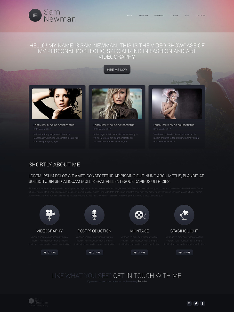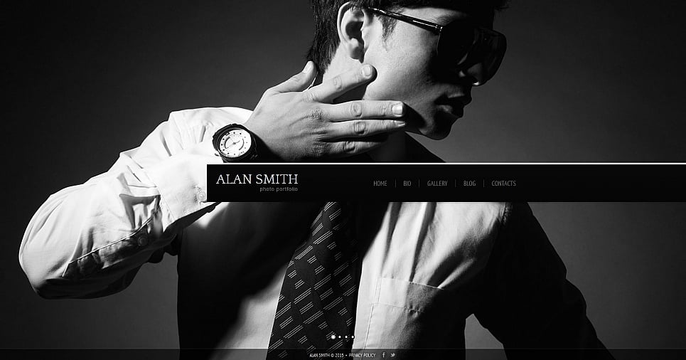 Он имеет полноразмерную страницу, заполненную интерактивными панорамными фотографиями, ведущими в разделы его журнала, галереи или мастерской. Внизу есть форма для рассылки новостей и кнопки социальных сетей для взаимодействия с посетителями.