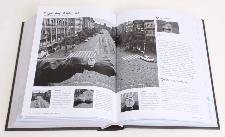 fotografischen Richtungen in Balkenform auflistet. Innerhalb dieser Zeitabschnitte werden auf einem Zeitstrahl wichtige Ereignisse dargestellt und im Text Informationen zu den einzelnen Abschnitten geliefert. Es schließen sich Beispielbilder an, die von den Autoren in namentlich gekennzeichneten Artikeln in das Zeitgeschehen eingeordnet und anhand einzelner Bildausschnitte interpretiert werden. So kann man sehr schön die Entstehung der Fotografie und ihre weitere Entwicklung nachvollziehen, sich aber auch in die Sicht- und Denkweise einzelner wegweisender Fotografen einfühlen.