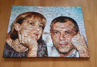 Вот так и создалась студия «Фотомозаика», которая абсолютно решает проблему с интересным и уникальным подарком. Нам никто не дарил фотомозаику. Мы не поленились сделать ее для себя из фоток с летнего отдыха. Какое же это счастье, смотреть на картину и в каждом уголке находить себя и друзей, вспоминать все смешные и радостные моменты. А если это будет делать мама? Видеть всех своих родных на полотне, которое украсит любой интерьер. Каково же будет удивление любимого, если подарить ему мозаику из фотографий свадьбы на ее годовщину?!) Короче, идей подарка море! В примерах мозаик вы можете увидеть фотомозаики, которые уже порадовали своих обладателей)