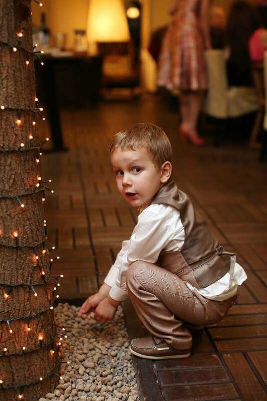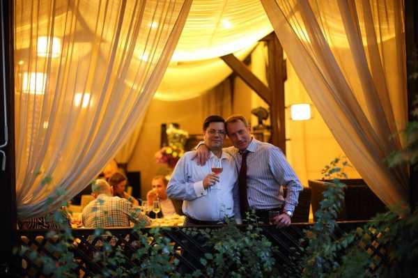 Первым делом, если это нужно, подробно снимается интерьер. После этой работы фотограф может переходить к созданию фотосета с живыми героями – время для съемки гостей это примерно тридцать минут до начала застолья и моменты произнесения тостов (опытный исполнитель никогда не снимает людей во время приёма пищи).