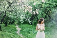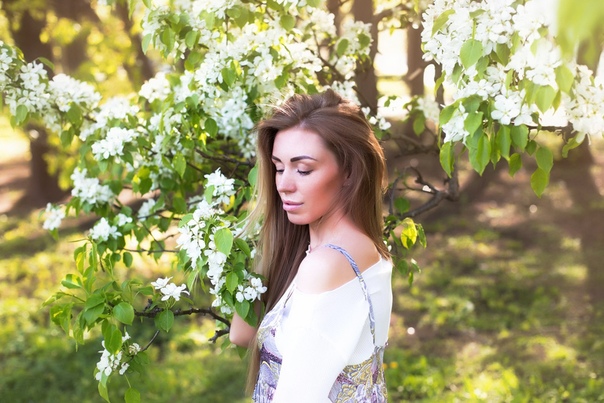 Допустим, вы решили запечатлеть красоту окружающей природы. Основная цель такой съемки – зафиксировать быстротечные и ускользающие моменты весны, пробуждение сил и возобновление жизни в природе. Если вы планируете сделать серию снимков в весеннем саду, подберите наряд именно под это место. Макияж должен соответствовать фону цветущего сада с его зеленой листвой, белыми или розоватыми цветками.