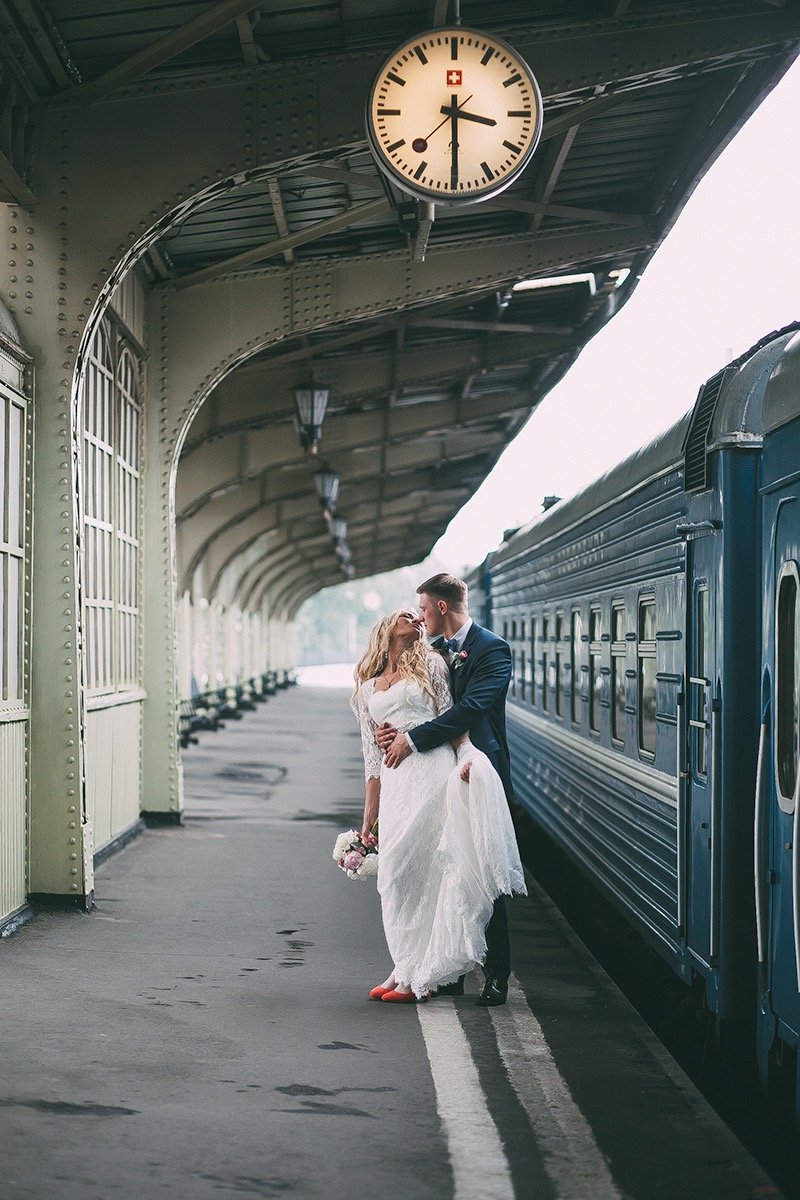 Поэтому даже на фоне самого сооружения ваш фотограф на свадьбу сможет сделать достаточно креативные кадры. Но куда символичнее будет сфотографироваться на фоне поездов и железнодорожных путей. Кстати, на территории этого вокзала людей обычно меньше, поэтому прохожие будут реже попадать в ваши снимки.