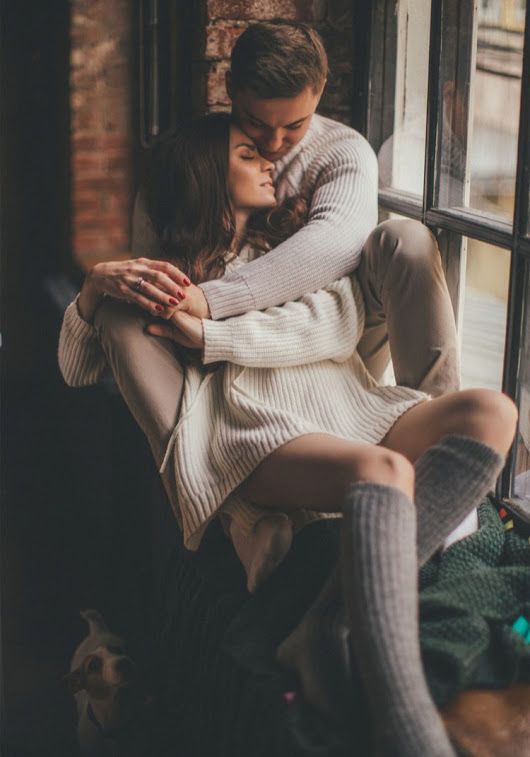 Зимой – зимний фотосет получится трогательным и эмоциональным. Для зимних фото не нужно подбирать декорации, потому что снег станет прекрасным фоном для двух влюбленных, особенно если они будут одеты в похожую одежду (вязаные свитера и джинсы, одинаковые шарфы на шее).