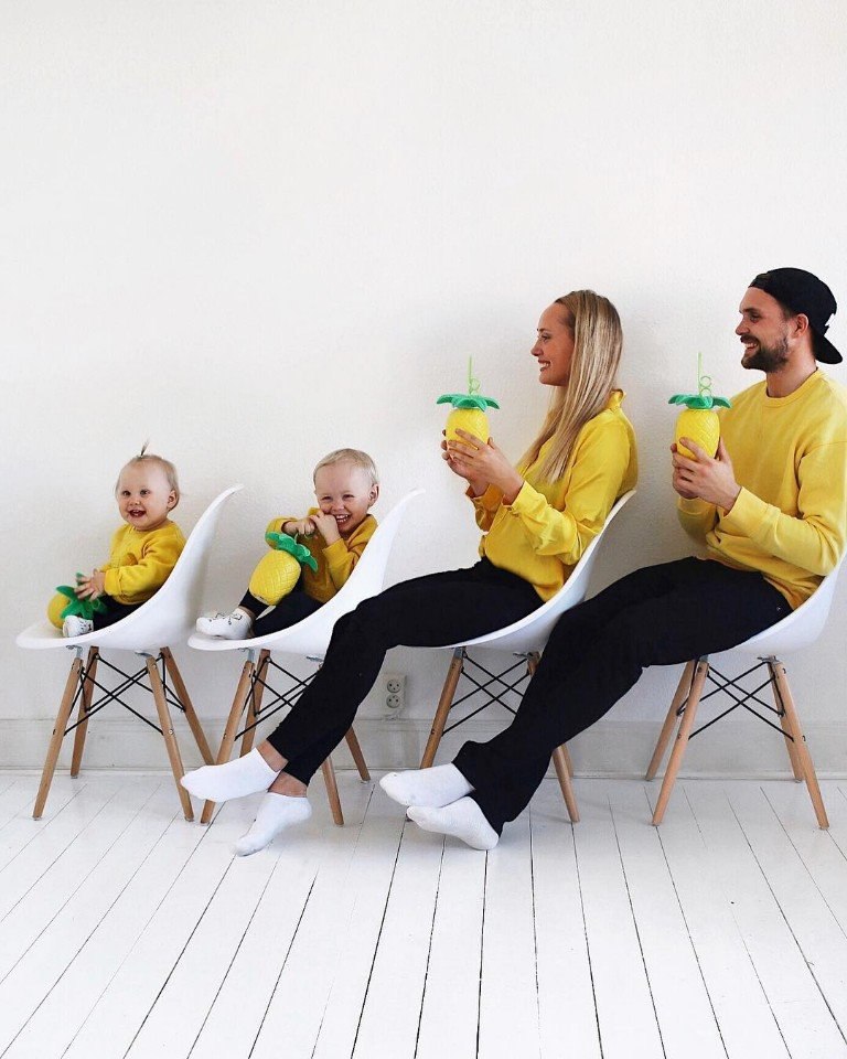 К примеру, папа может присесть, сверху на него как будто садится мама, дальше ребенок, другой малыш и так далее. Или все дружно ложатся на пол по росту — тоже вид получается оригинальный.
