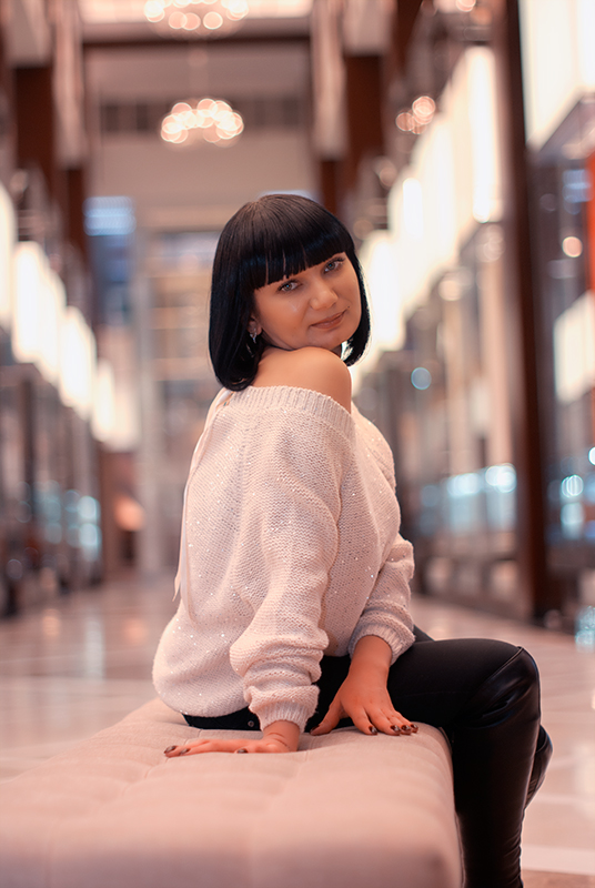 С красивой и милой Жанной для фотосессии выбрали интерьер кафе в одном из торговых центров, заодно фотографировались и в самом торговом центре. Было утро рабочего дня, посетителей было очень мало. Поэтому фотосессия прошла комфортно и с удовольствием.