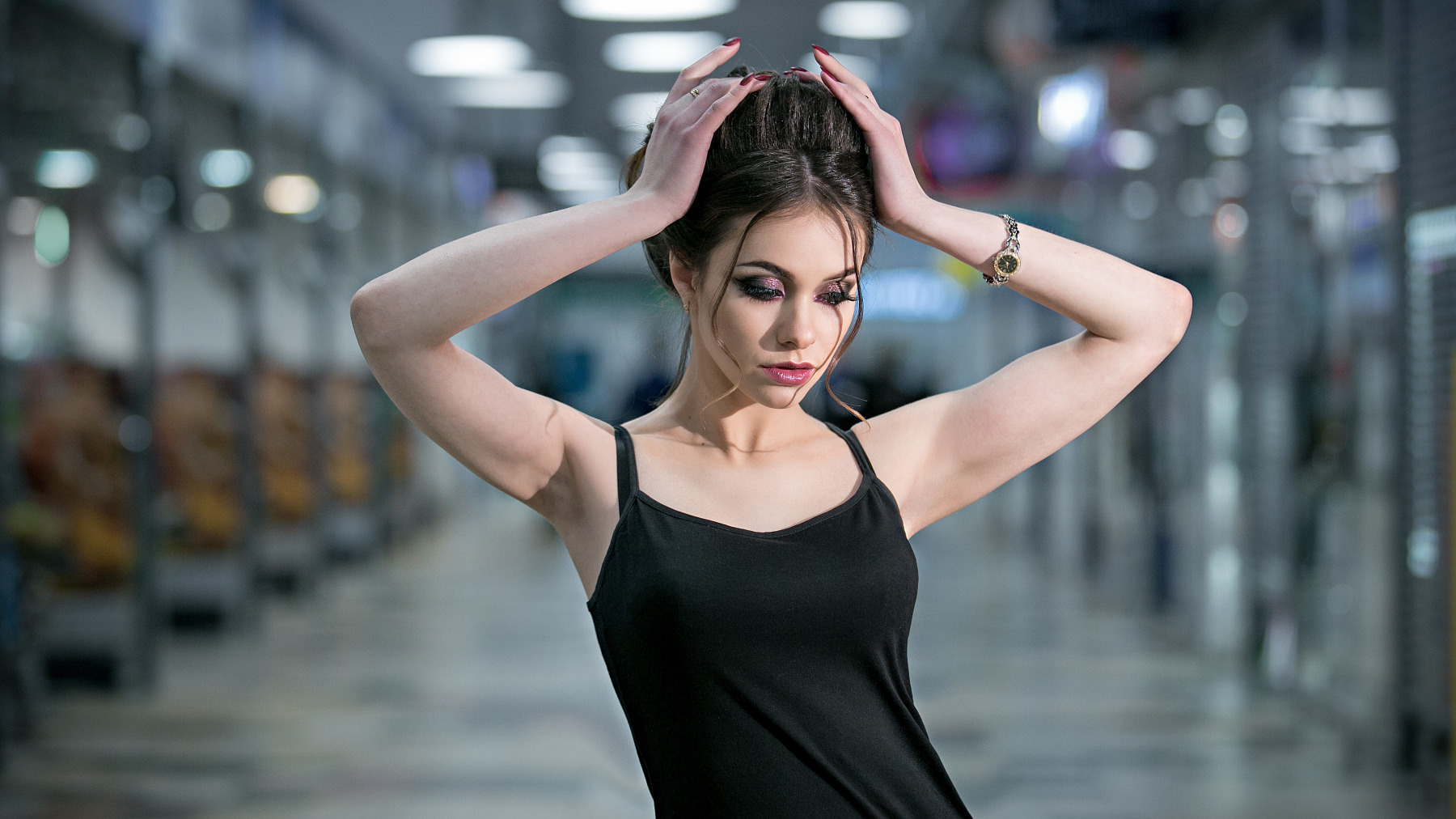 Выездная фотосессия девушки в интерьере торгового центра