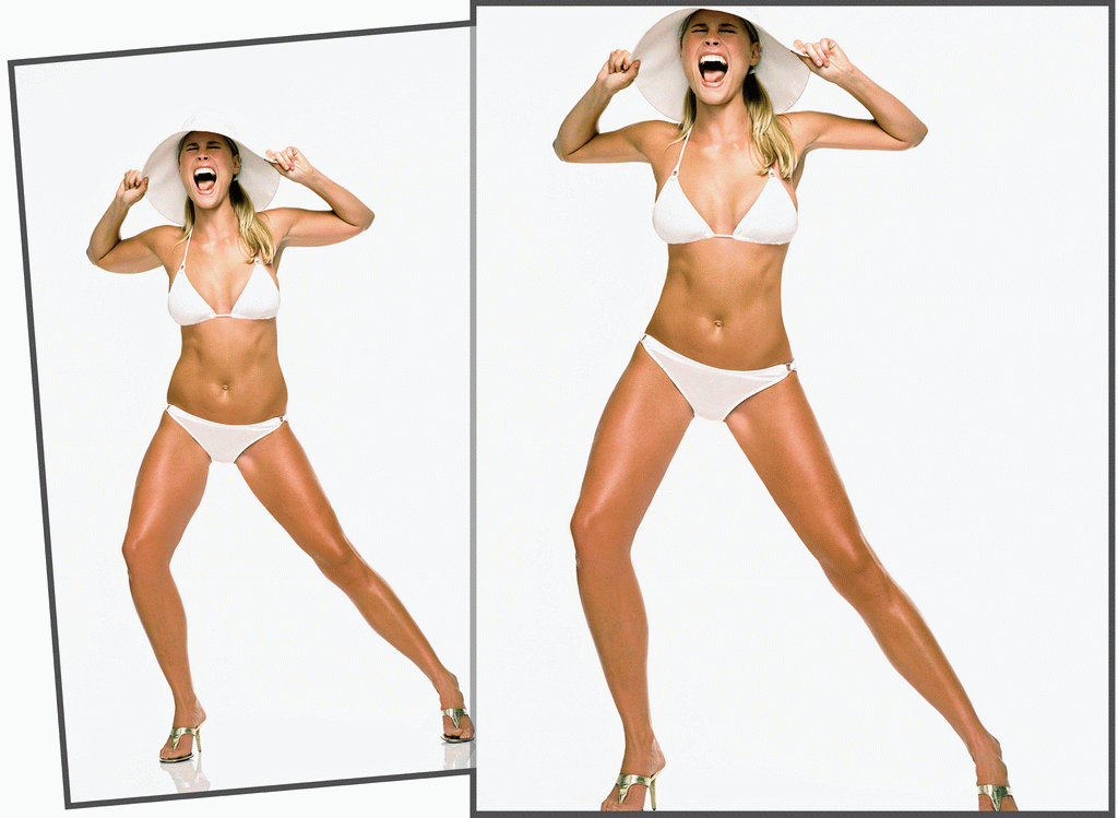 На данном снимке мы изменили пропорции талии и теперь живот и талия смотрятся довольно пропорционально. Не рекомендуем вам пользоваться инструментом Puppet Warp чтобы изменять мелкие детали или изгибы — для этого есть более точный инструмент, о котором речь пойдёт дальше.