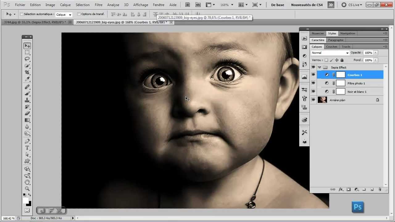 02 из 09Как добавить оттенок сепии в черно-белый корректирующий слой