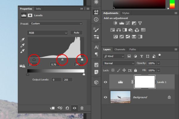 ΠΡΠ»ΠΈ ΠΈΠ·ΠΎΠ±ΡΠ°ΠΆΠ΅Π½ΠΈΠ΅ ΡΡΠ΅Π±ΡΠ΅Ρ ΠΎΠ±ΡΠ΅Π³ΠΎ ΠΊΠΎΠ½ΡΡΠ°ΡΡΠ°, ΠΏΠΎΡΠΊΠΎΠ»ΡΠΊΡ ΠΎΠ½ΠΎ Π½Π΅ ΠΈΡΠΏΠΎΠ»ΡΠ·ΡΠ΅Ρ Π²Π΅ΡΡ ΡΠΎΠ½Π°Π»ΡΠ½ΡΠΉ Π΄ΠΈΠ°ΠΏΠ°Π·ΠΎΠ½, ΡΠ΅Π»ΠΊΠ½ΠΈΡΠ΅ Π·Π½Π°ΡΠΎΠΊ Β«Π£ΡΠΎΠ²Π½ΠΈΒ» Π½Π° ΠΏΠ°Π½Π΅Π»ΠΈ Β«ΠΠΎΡΡΠ΅ΠΊΡΠΈΡΒ». ΠΠ°ΡΠ΅ΠΌ ΠΏΠ΅ΡΠ΅ΡΠ°ΡΠΈΡΠ΅ ΠΏΠΎΠ»Π·ΡΠ½ΠΊΠΈ Π²Π²ΠΎΠ΄Π° Shadow ΠΈ Highlight Π²Π½ΡΡΡΡ, ΠΏΠΎΠΊΠ° ΠΎΠ½ΠΈ Π½Π΅ ΠΊΠΎΡΠ½ΡΡΡΡ ΠΊΠΎΠ½ΡΠΎΠ² Π³ΠΈΡΡΠΎΠ³ΡΠ°ΠΌΠΌΡ.