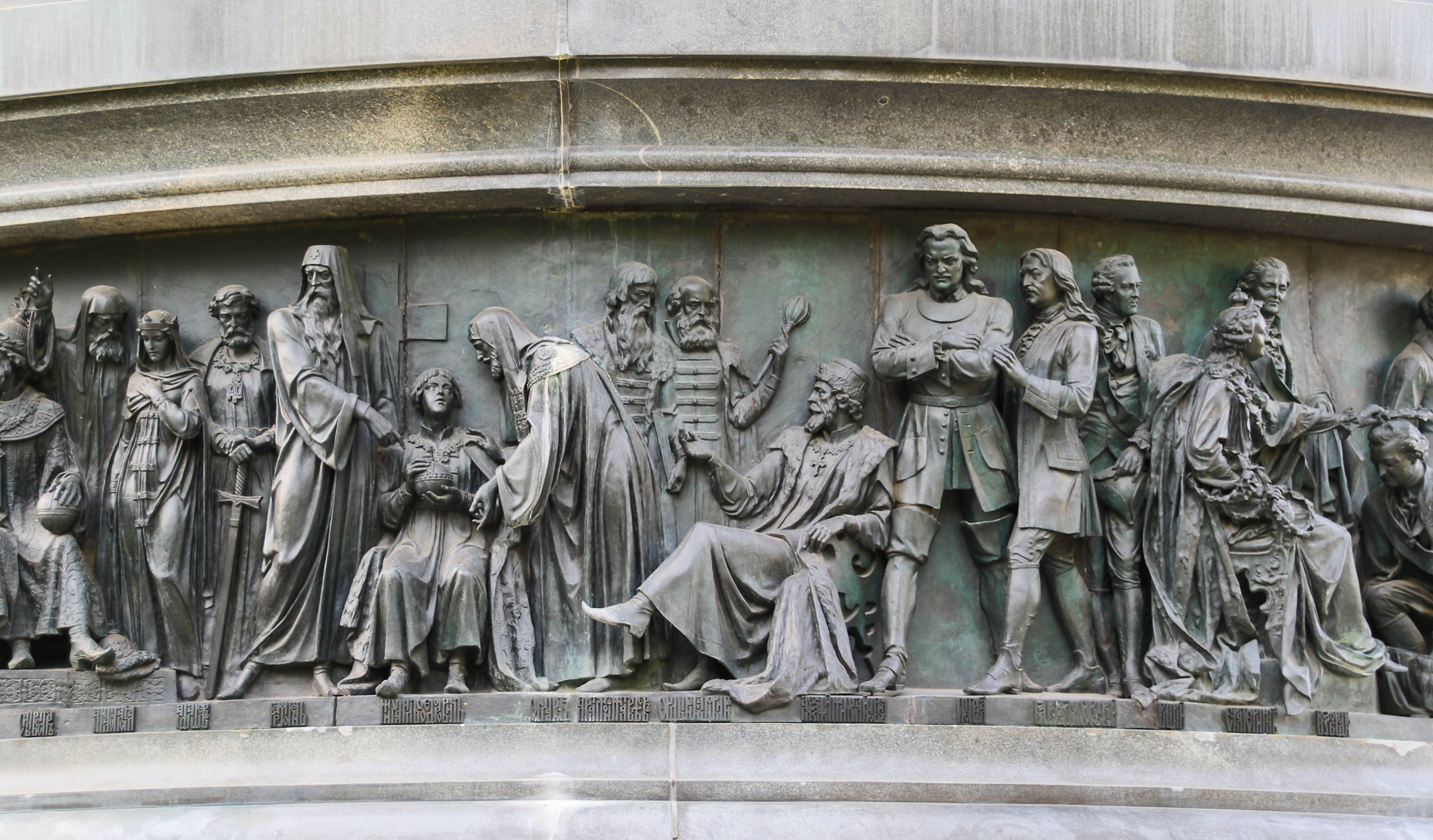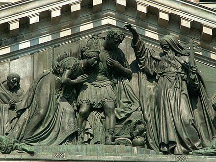Если смотреть прямо на статую, серьга будет слева от зрителя.