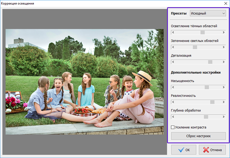 В этом приложении для фоторедактирования есть не только базовый набор функций, но и более сложные инструменты, например коррекция кривой, коррекция цвета и оттенков.