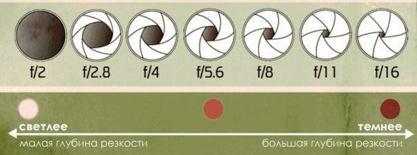 - Большая диафрагма = Большая глубина резкости = требуется больше света