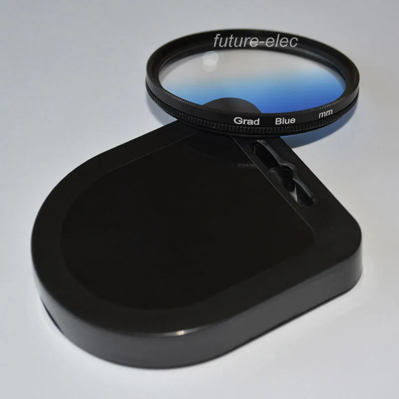 Наиболее широкое применение получили градиентные фильтры у которых прямоугольная форма. Эти светофильтры используются совместно с специальным держателем внутри которого мы их можем продольно перемещать, сдвигая грань между светлой и более темной частью фильтра. Но есть градиентные фильтры, которые вставлены в металлическую оправу круглой формы. Их использование не так удобно, как с прямоугольными фильтрами.