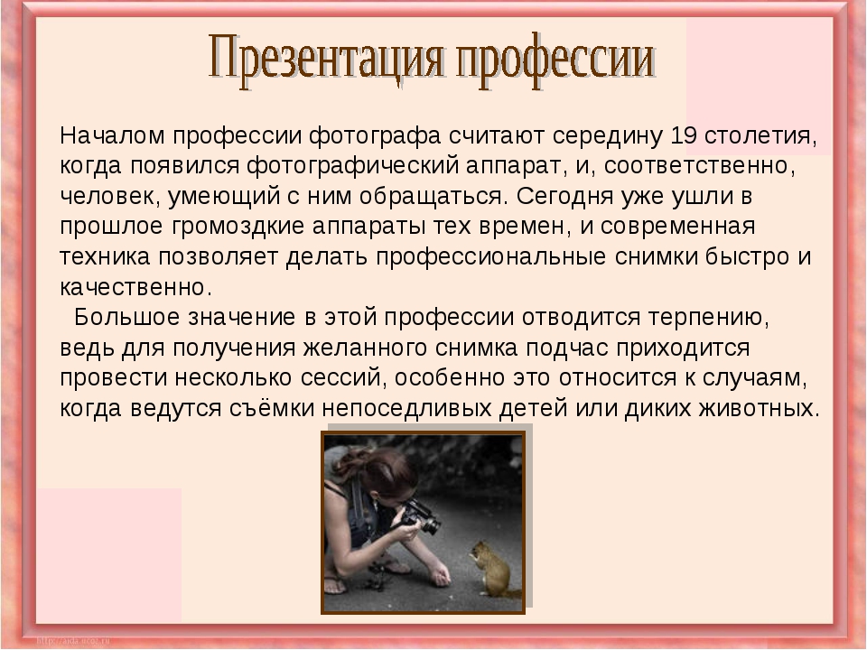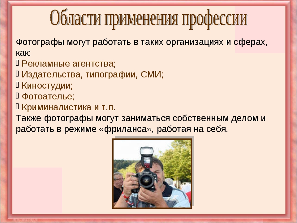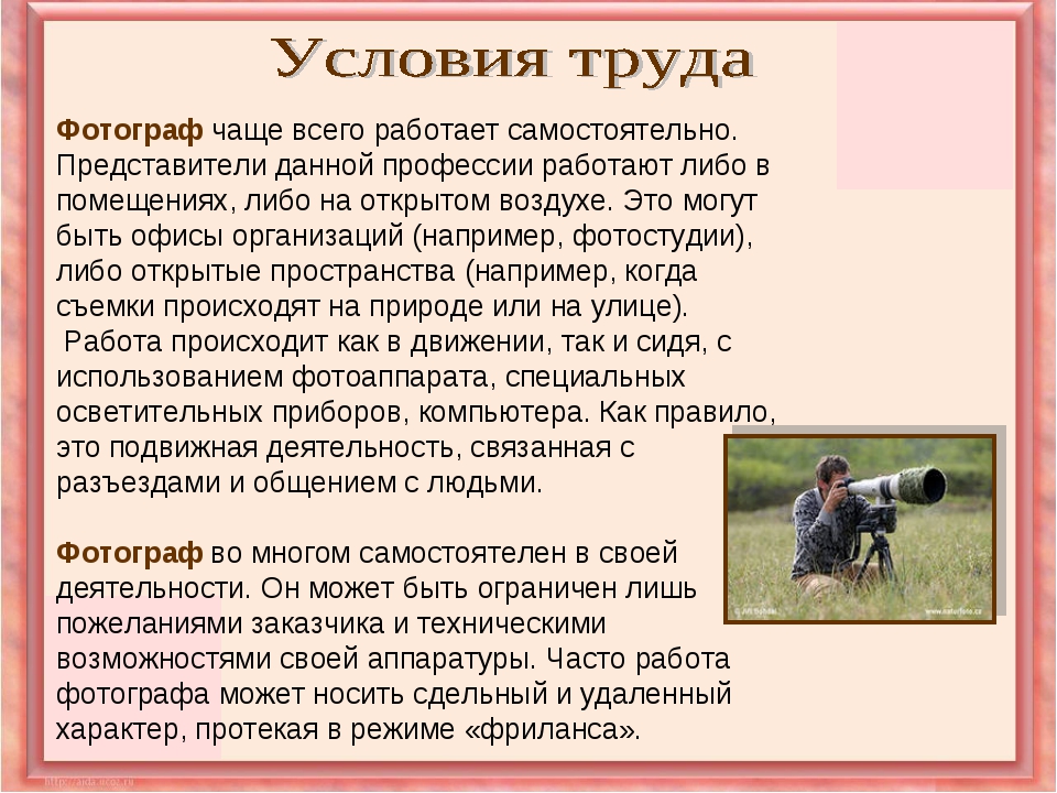 Характеристика фотографа: Фотограф. Описание профессии фотограф