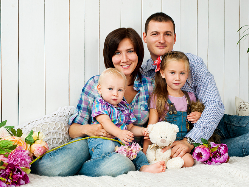 8|| Смотрите друг на другаДинамичный, позитивный, полный жизни получается снимок, когда члены семьи не смотрят в объектив фотоаппарата, а смотрят друг на друга и веселятся. Фотографу нужно только подловить удачный кадр, пока все хохочут и развлекаются.