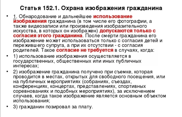 ГК РФ допускает использование изображения гражданина без получения согласия в строго определенных случаях, как то: