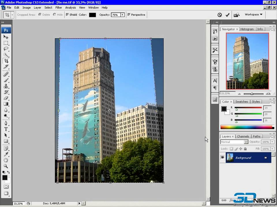 ΠΠΎΡ ΡΡΠΎ Ρ Π½Π°Ρ ΠΏΠΎΠ»ΡΡΠΈΠ»ΠΎΡΡ Π² ΠΊΠΎΠ½Π΅ΡΠ½ΠΎΠΌ ΠΈΡΠΎΠ³Π΅. ΠΡΠ΅ ΡΡΠΈ ΠΌΠ°Π½ΠΈΠΏΡΠ»ΡΡΠΈΠΈ Π½Π΅ΠΌΠ½ΠΎΠ³ΠΎ Π·Π°ΠΌΡΠ»ΠΈΠ²Π°ΡΡ ΠΊΠ°ΡΡΠΈΠ½ΠΊΡ, ΠΏΠΎΡΡΠΎΠΌΡ ΡΠ°Π±ΠΎΡΠ°ΡΡ Π½ΡΠΆΠ½ΠΎ Ρ ΠΏΠΎΠ»Π½ΠΎΡΠ°Π·ΠΌΠ΅ΡΠ½ΡΠΌ ΡΠ°ΠΉΠ»ΠΎΠΌ, Π° Π½Π΅ ΠΊΠ°ΠΊ Ρ Ρ ΠΌΠ°Π»Π΅Π½ΡΠΊΠΎΠΉ ΠΊΠ°ΡΡΠΈΠ½ΠΊΠΎΠΉ Ρ ΡΠ°Π·ΡΠ΅ΡΠ΅Π½ΠΈΠ΅ΠΌ 72 ΡΠΎΡΠΊΠΈ Π½Π° Π΄ΡΠΉΠΌ. Π’Π΅ΠΌ Π½Π΅ ΠΌΠ΅Π½Π΅Π΅, ΡΠ΅ΠΏΠ΅ΡΡ ΠΌΡ Π²ΠΈΠ΄ΠΈΠΌ Π·Π΄Π°Π½ΠΈΠ΅, ΡΠ°ΠΊ ΡΠΊΠ°Π·Π°ΡΡ, ΠΏΠΎΡΡΠΈ ΡΠ°ΠΊ ΠΆΠ΅ ΠΊΠ°ΠΊ Π²ΠΈΠ΄ΠΈΡ Π΅Π³ΠΎ ΡΠ΅Π»ΠΎΠ²Π΅ΡΠ΅ΡΠΊΠΈΠΉ Π³Π»Π°Π·. ΠΠΎ Π²ΡΡΠΊΠΎΠΌ ΡΠ»ΡΡΠ°Π΅ Ρ Π½Π° ΡΡΠΎ Π½Π°Π΄Π΅ΡΡΡ. ΠΠ°ΡΡΠΈΠ½ΠΊΠ°, ΠΊΠΎΠ½Π΅ΡΠ½ΠΎ, «ΡΠ΅ΡΠ½ΠΎΠ²Π°ΡΠΎ» ΠΎΠ±ΡΠ΅Π·Π°Π½Π°, Π½ΠΎ ΡΠ°ΠΊ Π²Π΅Π΄Ρ ΡΡΠΎ ΡΠΎΠ»ΡΠΊΠΎ ΠΏΡΠΈΠΌΠ΅Ρ. Π ΡΠΎΠΌΡ ΠΆΠ΅ ΠΌΠΎΠΆΠ½ΠΎ ΠΈΠ·Π½Π°ΡΠ°Π»ΡΠ½ΠΎ, Π½Π° ΡΡΠ°ΠΏΠ΅ ΡΡΡΠΌΠΊΠΈ, ΡΡΠ°ΡΠ°ΡΡΡΡ «Π±ΡΠ°ΡΡ» ΡΡΡΡ ΡΠΈΡΠ΅, ΠΏΠΎΠ΄ΡΠ°Π·ΡΠΌΠ΅Π²Π°Ρ Π±ΡΠ΄ΡΡΡΡ ΠΎΠ±ΡΠ΅Π·ΠΊΡ.