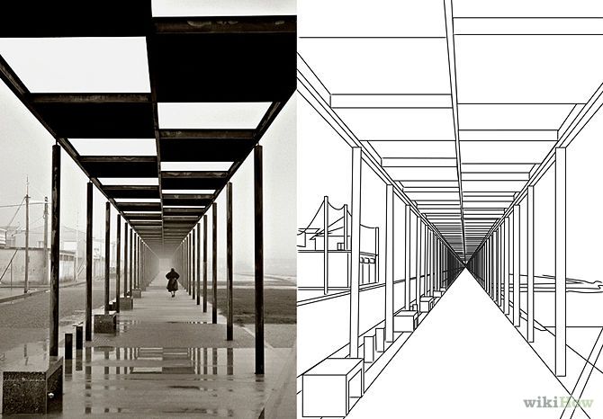 Обратите внимание, что углы здания склоняются внутрь, а не параллельны друг другу, как должно быть.