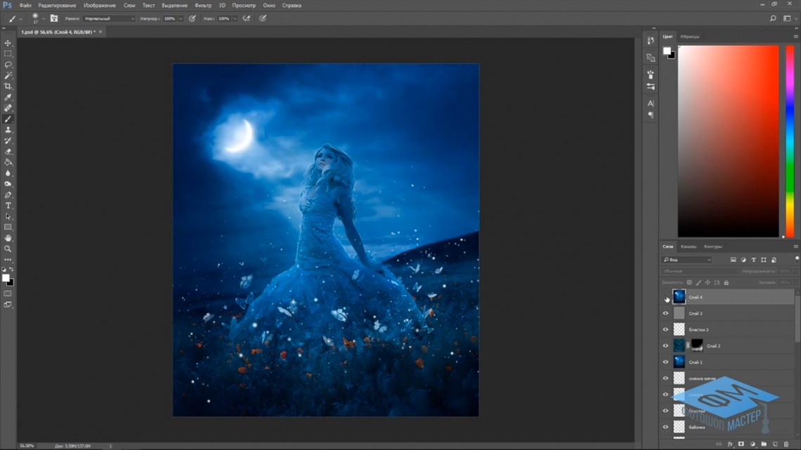 Добавлять к изображениям специальные эффекты относительно просто. Чтобы освоить режимы наложения, слои и корректирующие слои, потренируйтесь с ними. Используя несколько изображений с недавней съемки, мы создали впечатляющий конечный продукт в этом эпизоде. Когда дело доходит до спецэффектов, программа Photoshop не очень хороша. Тремя ключевыми функциями являются режимы наложения, корректирующие слои и маски слоя. Даже после того, как был выбран режим наложения экрана, вам почти наверняка потребуется замаскировать нежелательные области. Вы не должны бояться экспериментировать с размером или расположением ваших слоев.