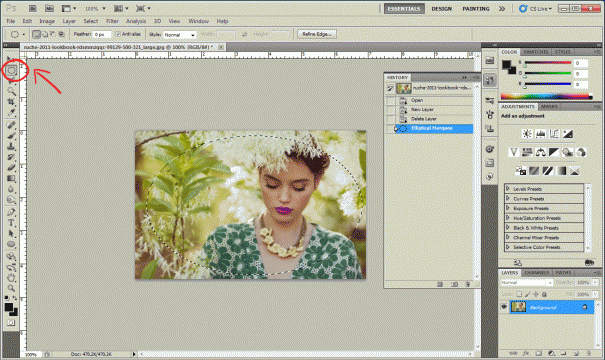 ШАГ 1 . Выберите инструмент Elliptical Marquee Tool (M) и поместите овал поверх всего изображения.