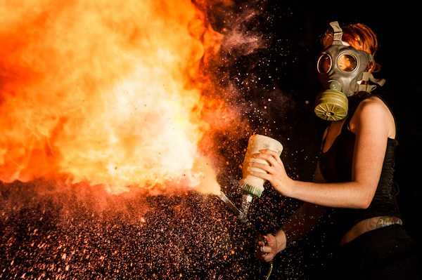 Во время съёмки огня следует соблюдать особую осторожность. Дым и жар пламени могут нанести непоправимый ущерб вашему фотооборудованию, а огонь, который способен очень быстро выйти из-под контроля, может не только сжечь реквизит, но и, самое главное, стать угрозой для вашей жизни. Вот несколько простых правил безопасности, которые вы должны знать (и выполнять!):