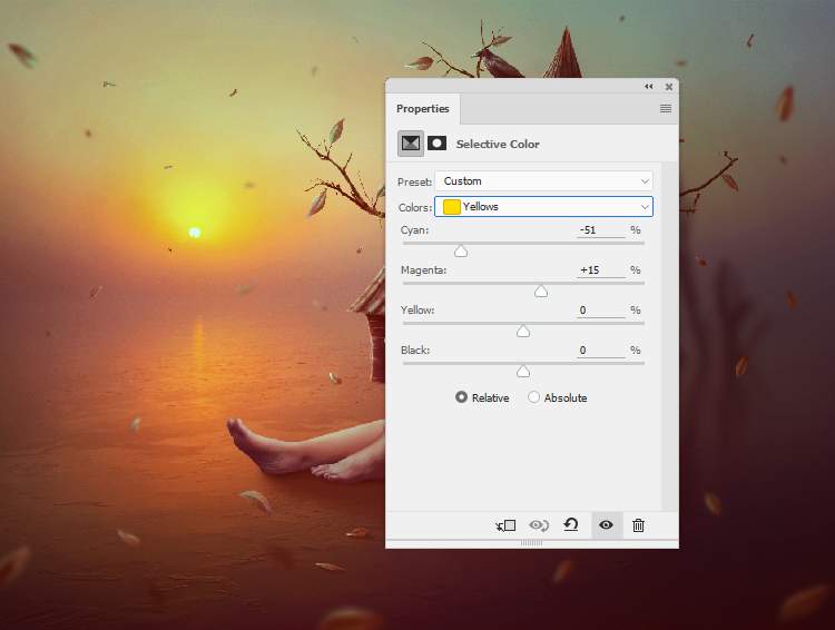 Луна все еще была визуально довольно яркой по сравнению с остальной частью пейзажа на фотографии.Чтобы решить эту проблему, я изменил непрозрачность слоя с луной со 100% до 80%.