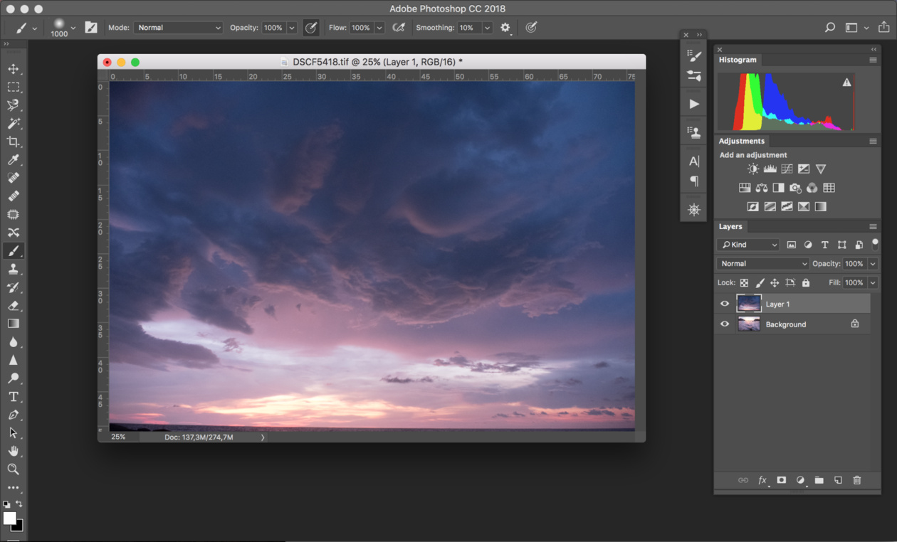 Когда вы закончите, важно внимательно посмотреть на свое изображение и убедиться, что между пейзажем и небом нет белой линии, которая явно видна. Такая линия просто показывает, что изображение представляет собой комбинацию разных сцен, и явно выдает ваши навыки. Если вы его видите, просто используйте инструмент Clone Stamp, чтобы избавиться от него. Вы можете сделать это, выбрав инструмент «Клонировать штамп» и нажав Ctrl +, чтобы увеличить изображение.Поработайте на разных участках края, смахивая очевидную белую линию.