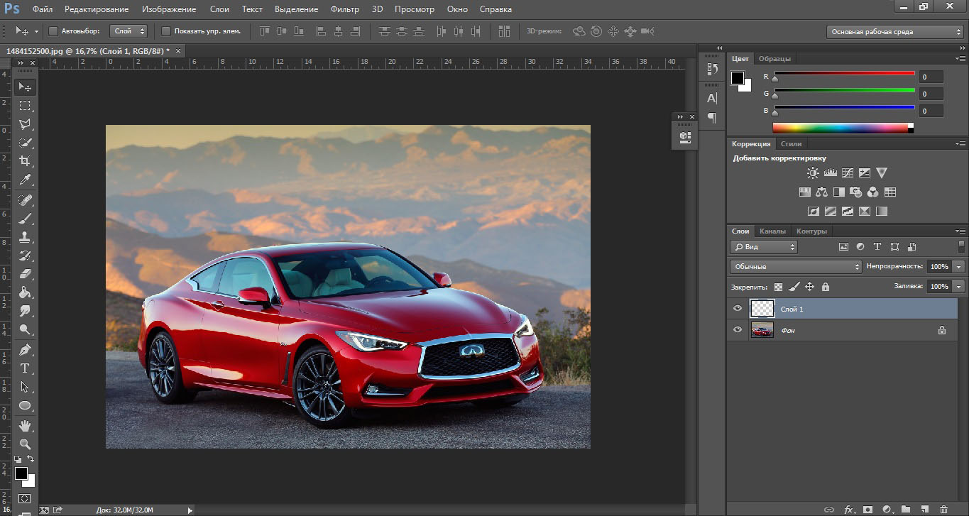 Для примера я выбрал фотографию с машиной. Сейчас я покажу, как заменить цвет автомобиля в фотошопе.