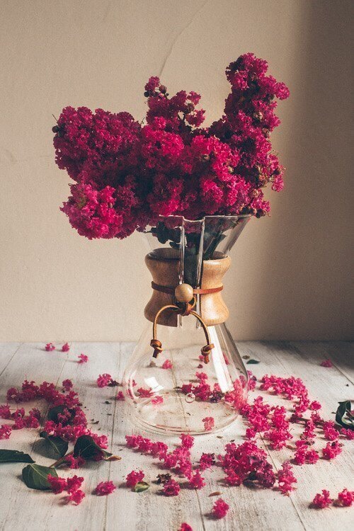 Я часто фотографирую срезанные цветы, раскладывая их на плоской доске и снимая сверху. Это прекрасный способ продемонстрировать их.