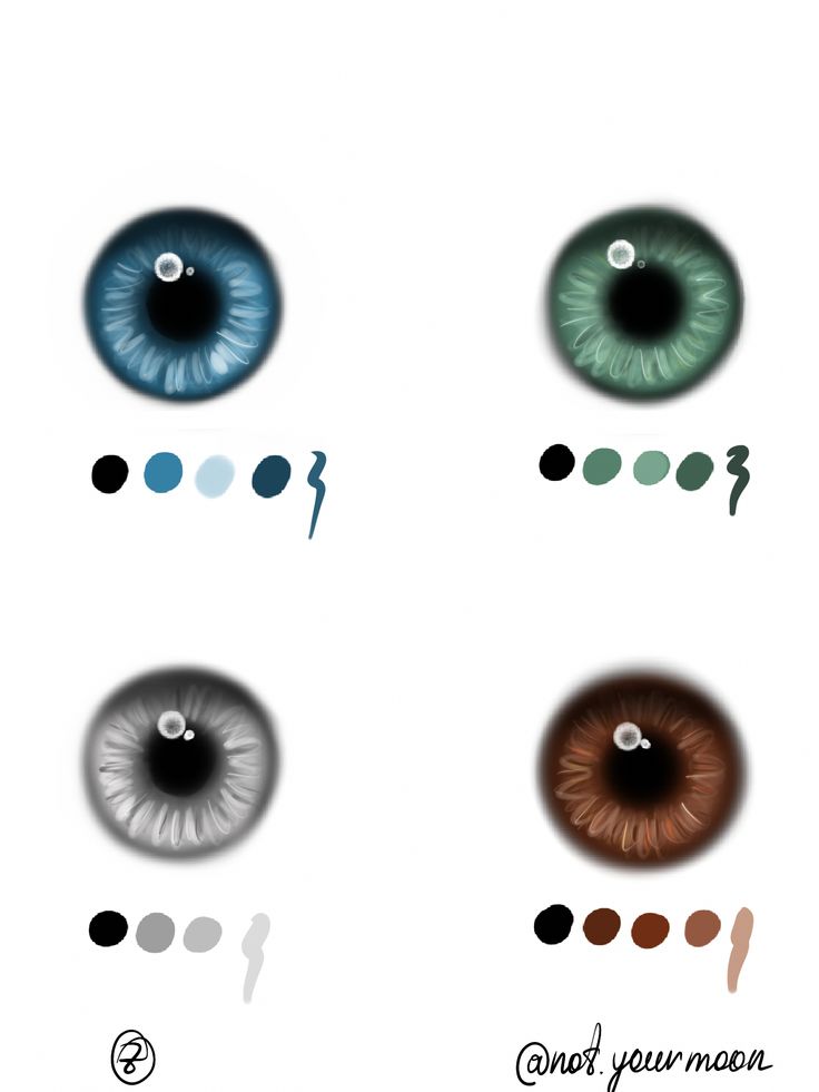 Нарисуйте каждый мазок кисти в виде изогнутой буквы «U», повторяющей контур или радужную оболочку, и помните, что это трехмерный объект.