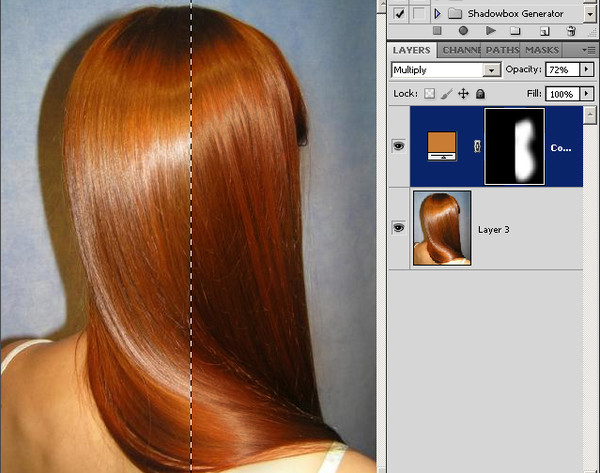 Вы можете исправить это так же, как и в варианте выше, с помощью , используя кисть в режиме «наложения» на маске слоя.
