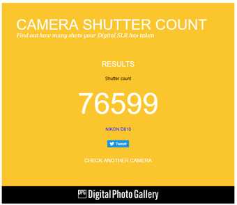Этот сервис поможет проверить пробег фотоаппарата онлайн. Он, в основном, поддерживает современные модели от Nikon и Pentax, а также некоторые старые камеры Canon и Sony. Просто загрузите на Camera Shutter Count необработанный JPEG или RAW, и результат будет показан через мгновение.