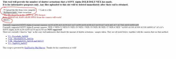 После загрузки снимка, Camera Shutter Count сразу же покажет счетчик сделанных кадров и модель камеры.